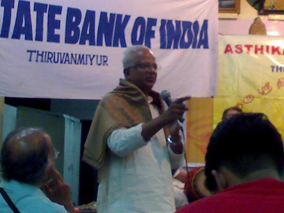 There are very few people who can don multiple hats and yet manage to enviably excel in each of the roles they play. One such great person is Sri T.N. Seshagopalan (TNS) – vocalist, vainika, keyboard/harmonium artist, teacher, harikatha exponent, composer …. you could just go on and on. The rasikas assembled at Amarabharati, West Tank St., Tiruvanmiyur, Chennai yesterday got to witness the “Harikatha Exponent” in the multi-faceted TNS. A very impressive performance it was that left me with this feeling of having witnessed something great, of having learnt a lot and of wanting to learn a lot more about this boundless ocean that Carnatic Music is.