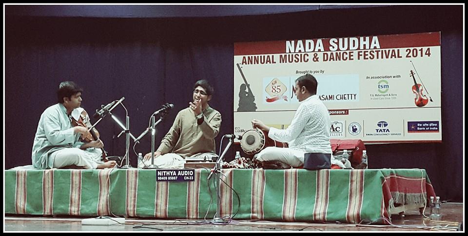 Abhishek Raghuram (Vocal), Mysore Srikanth (Violin) and R. Sankaranarayanan (Mrudangam) performed for Nadha Sudha.
