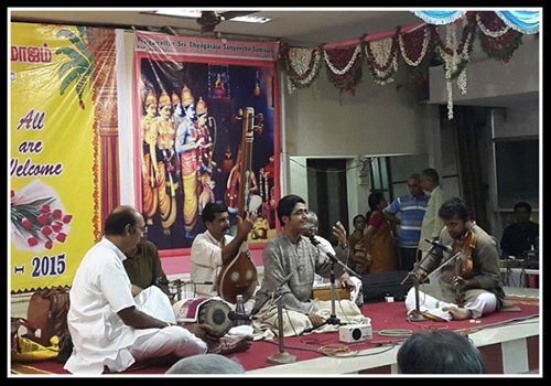 Abhishek Raghuram (Vocal), H.N. Bhaskar (Violin), Neyveli Narayanan (Mrudangam) and Anirudh Athreya (Khanjira) performed today for Nanganallur Sri Thyagaraja Sangeetha Samajam. It was a great performance by the team. Abhishek was as usual brilliant. H.N. Bhaskar played so beautifully. Neyveli Narayanan anna is one of my favorites and he and Anirudh Athreya accompanied so well for the kritis and played a very good tani.